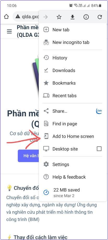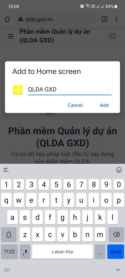 Cài trang qlda.gxd.vn ra màn hình chính của thiết bị iOS hoặc Android để thuận tiện tra cứu văn bản quản lý dự án xây dựng