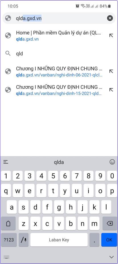 - Bước 2: Nhập địa chỉ trang app web qlda.gxd.vn