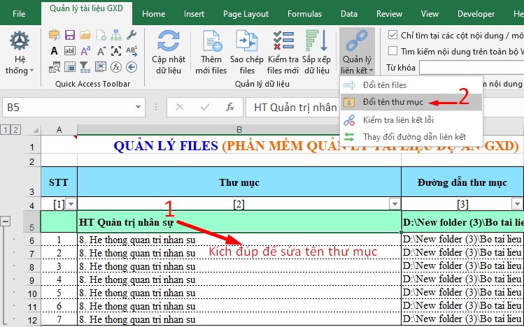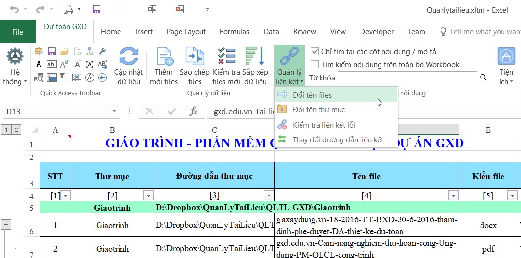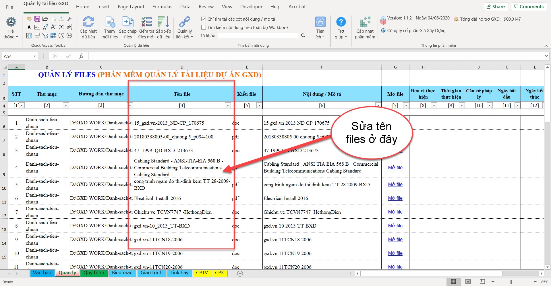 - Với phần mềm QLTL GXD bạn có thể thao tác đổi tên file hàng hoạt rất nhanh, đơn giản như dưới đây.
