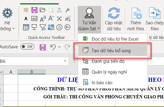 Để nhập các mục này, thì ở trên thanh công cụ chỗ lệnh Tư vẫn giám sát, bạn chạy lệnh Tạo dữ liệu bổ sung