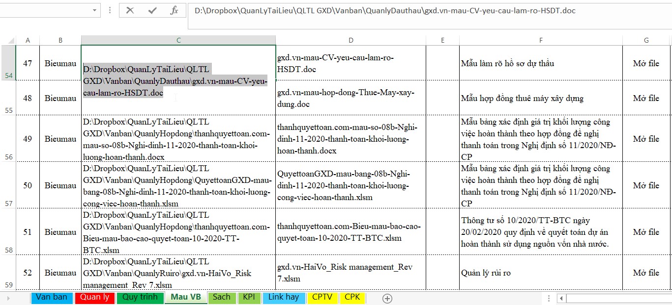 Khi sắp xếp tài liệu, phần mềm sẽ kiểm tra và so sánh URL của bản ghi trong sheet và hyperlink, nếu thấy sai khác sẽ đổi theo.