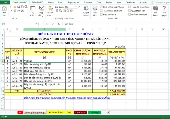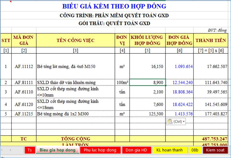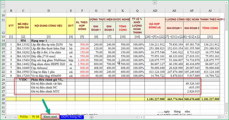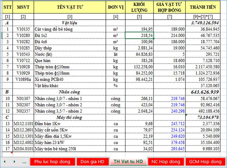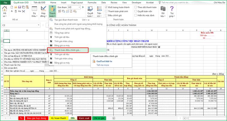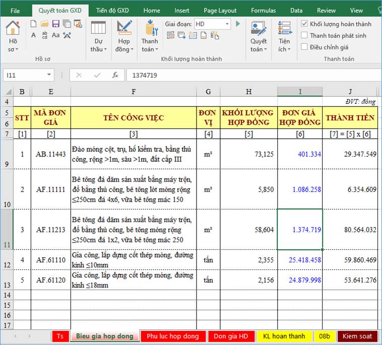 Riêng trường hợp hợp đồng theo đơn giá điều chỉnh do có nhiều tình huống thanh toán, điều chỉnh theo nhiều kịch bản. Nhóm nghiên cứu đã đưa ra 3 lựa chọn cho các bài toán thanh toán và điều chỉnh giá tổng quát. Về cơ bản kết hợp tùy chỉnh với Excel khi thực hiện nữa sẽ đủ bao quát các tình huống thực tế.