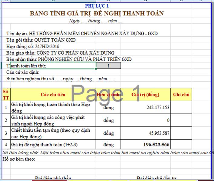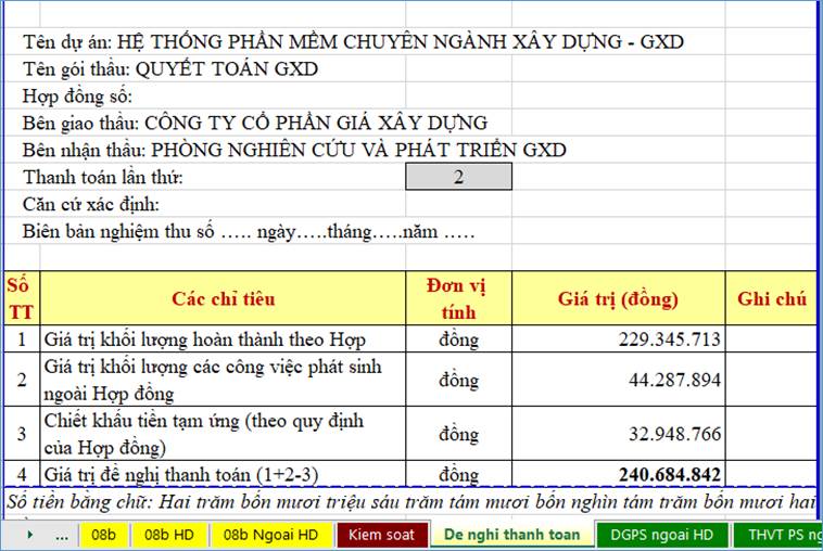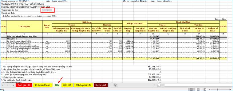 # Thanh quyết toán một lần cho khối lượng theo hợp đồng và phần phát sinh