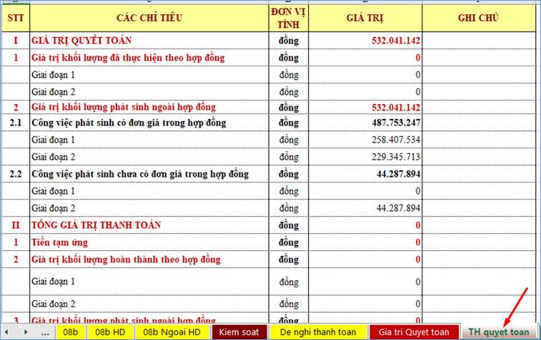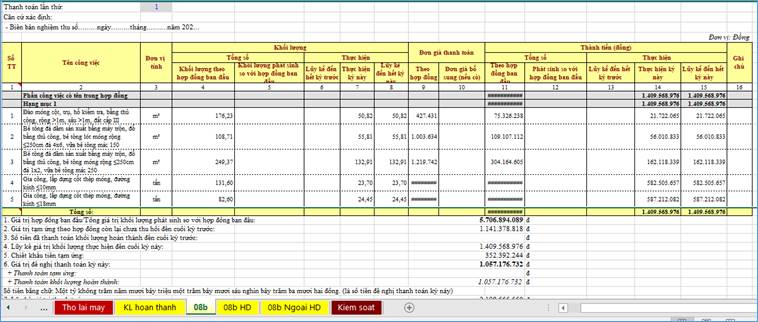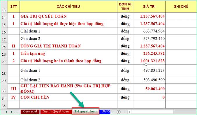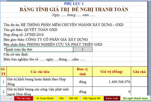 | 3 | Lưu hồ sơ thanh quyết toán | Lưu file hồ sơ thanh quyết toán, lưu dạng .xlsm |