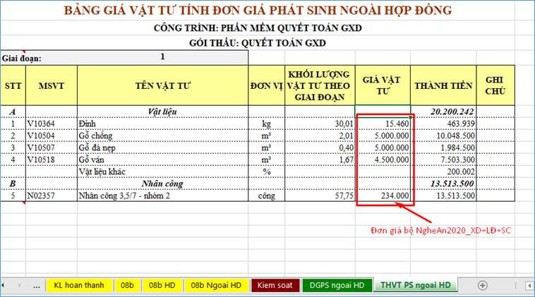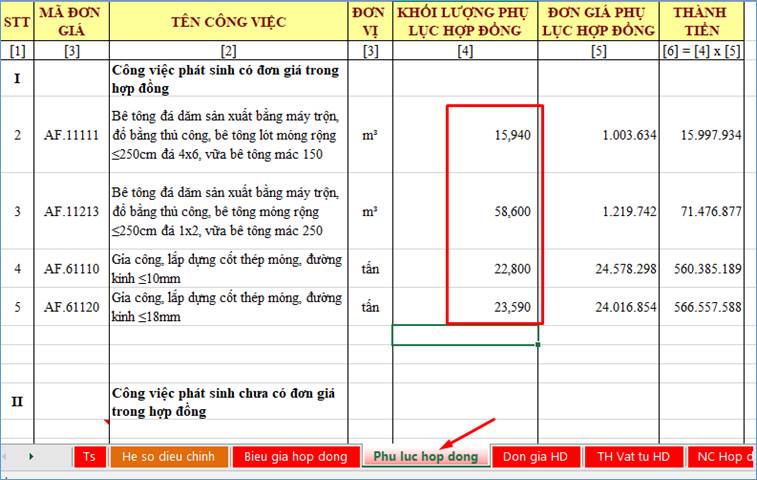 Phụ lục 04: Bảng xác định giá trị khối lượng công việc phát sinh ngoài hợp đồng đề nghị thanh toán.