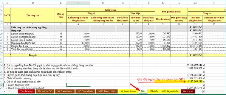 # Tình huống thanh toán đơn giá điều chỉnh, lũy kế giá trị thanh toán lớn hơn giá trị hợp đồng ký kết ban đầu.