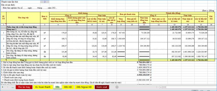 Đết hết tầng 3: Thanh toán tạm ứng khối lượng (thanh toán nhanh)