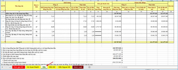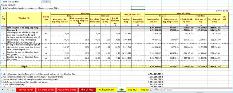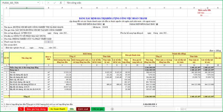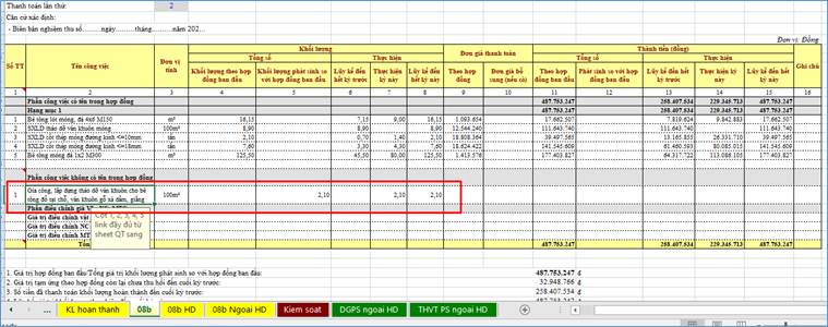 Đối với tùy từng Kho bạc, có Kho bạc yêu cầu gộp phần trong hợp đồng và phần phụ lục phát sinh vào cùng 1 bảng 08b. Hoặc có Kho bạc yêu cầu ngược lại, tách phần trong hợp đồng và ngoài hợp đồng ra thành Biểu 08b khác nhau. Tùy từng trường hợp mà bạn lựa chọn cách trình bày phù hợp.