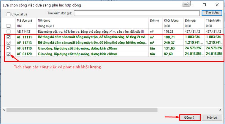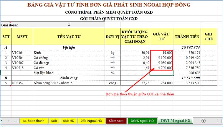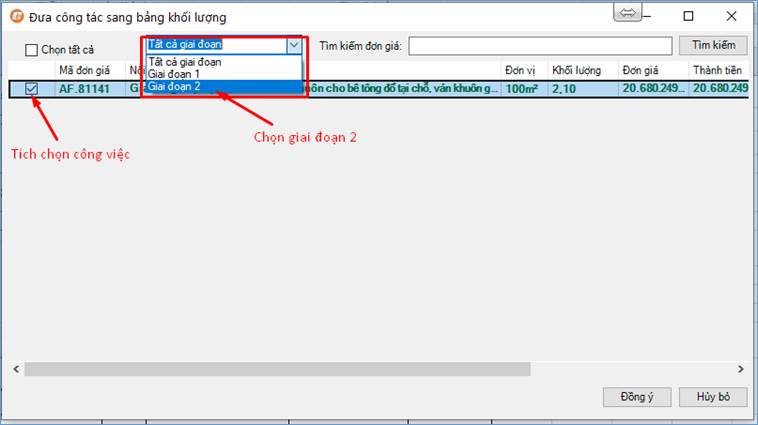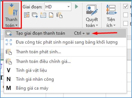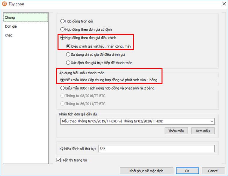 Lựa chọn này cần được thực hiện trước khi tạo giai đoạn thanh toán, phần mềm sẽ tự động tính toán đơn giá giai đoạn, đơn giá điều chỉnh tương ứng.
