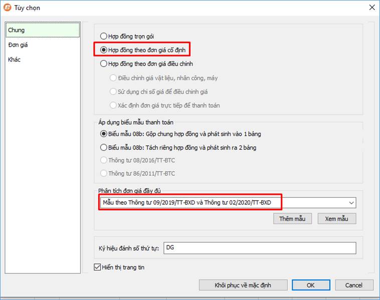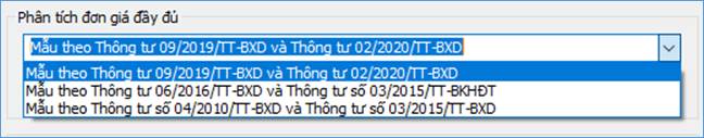 Tùy biến lựa chọn mẫu đơn giá đầy đủ. Nếu tính toán đơn giá để kiểm tra, thẩm tra, thanh quyết toán theo các hướng dẫn cũ cho các công trình cũ thì phần mềm cũng hỗ trợ.
