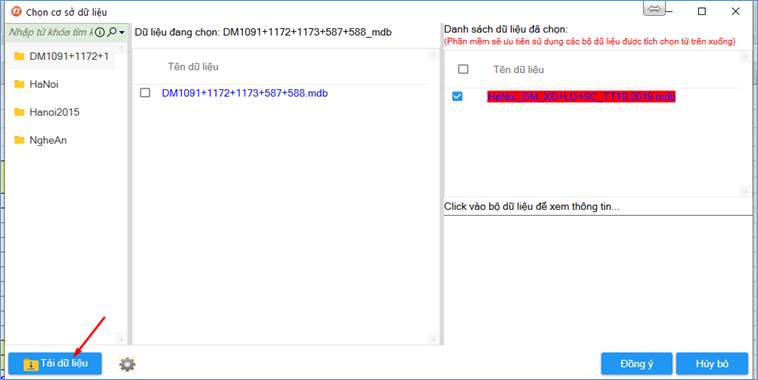 Nếu chọn cơ sở dữ liệu thì bạn Kích chọn dữ liệu đã có và ấn Đồng ý