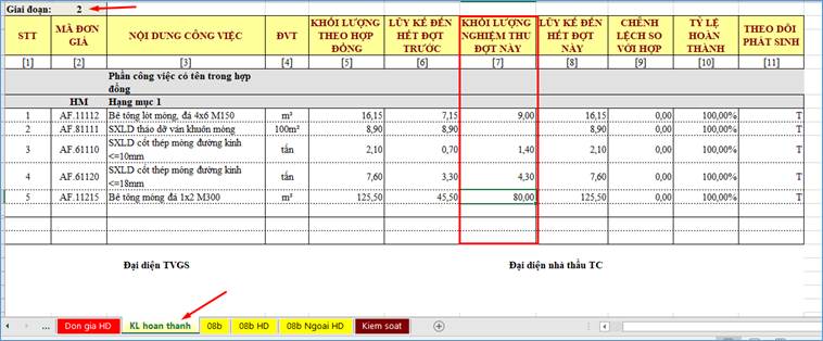 Việc thanh toán giai đoạn về sau, đơn giá sẽ bỏ giá trị phần vật liệu chính đã được thanh toán trong các công tác nêu trên. Nhà thầu cần có giải pháp đàm phán với Chủ đầu tư về cách thức thanh toán để đỡ thiệt thòi nhất. Vì Nhà thầu có thể được hưởng những khoản chi phí đuôi đi kèm (Chi phí trực tiếp khác, chi phí chung, lãi tính trước, chi phí xây dựng lán trại, nhà tạm)