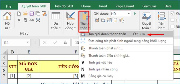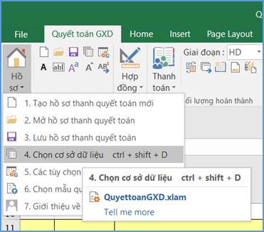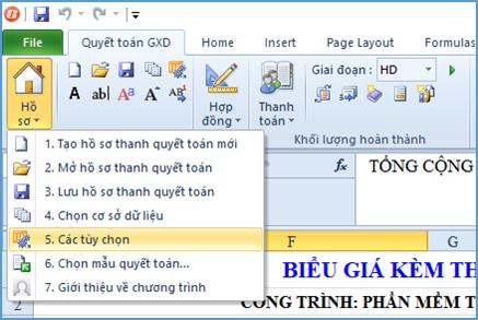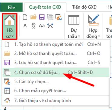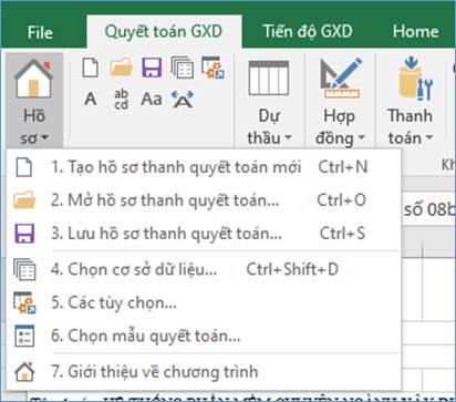 Gồm các lệnh liên quan đến file hồ sơ thanh quyết toán. Khi bạn cần tạo file mới, mở file cũ ra làm tiếp, lưu file... thì nhớ các lệnh ở menu này.