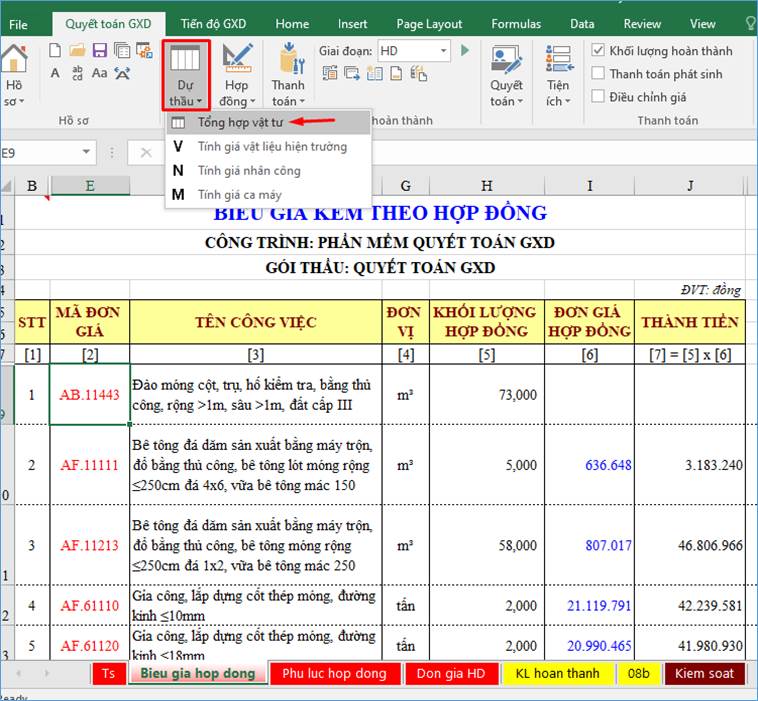 Ký hiệu này để đánh số thứ tự công việc theo như trong hồ sơ thầu, biểu giá hợp đồng đã ký. Cần đánh là CT, ĐG hay gì đó thì bạn nhập ký tự vào đó, khi bạn tra mã trong biểu giá hợp đồng, các công việc sẽ tự động đánh theo mã này.