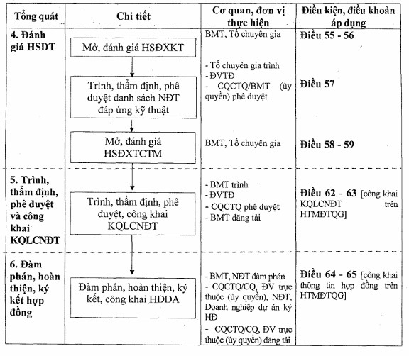 b) Đánh giá, làm rõ (nếu có) hồ sơ dự sơ tuyển, hồ sơ dự đàm phán, hồ sơ dự thầu